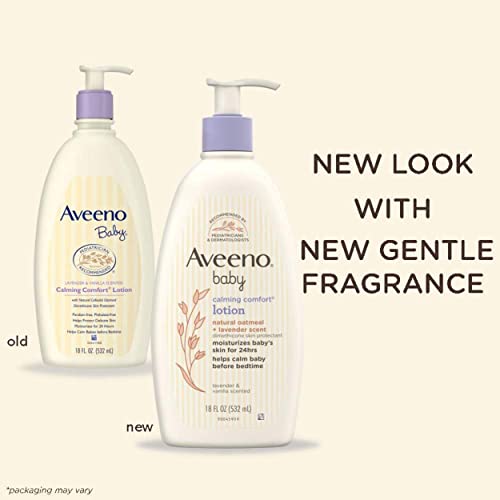 18-fluid ounces of Aveeno Baby Calming Comfort Moisturizing Body Lotion with relaxing lavender and vanilla scents to help comfort and soothe your little one