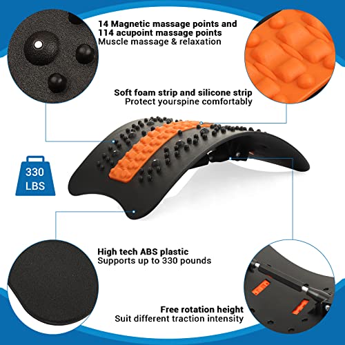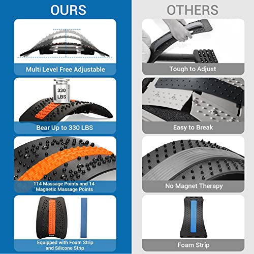 【Relieves Back Pain & Improves Posture】: Our back stretcher has 114 massage points and 14 magnetic massage points that bring acupuncture effect by deeply pressing the specific acupoints. Acupuncture massage and back support for your back, relieving pain in the lumbar, back, and sciatic nerves. Back cracker relieves back pressure by stimulating the back and restores the natural line of the spine.