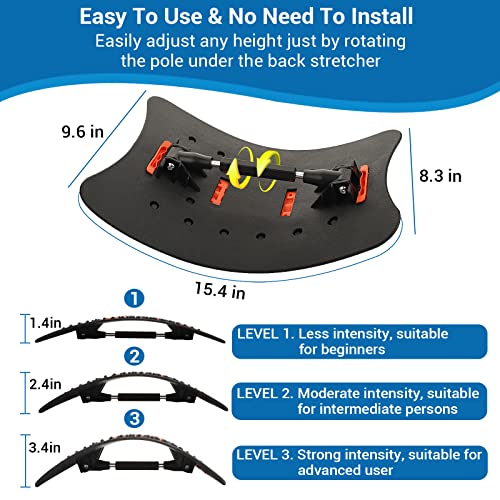 【Newest Upgrade】: The back cracking device can be easily adjusted to any height just by rotating the pole under the back stretcher. The maximum height can be adjusted to 3.4 inches. Experts recommend a height of 1.77″ – 2.96″. You can choose the most suitable and comfortable height to stretch your back and relieve stress. The higher the height you set, the stronger the stretching force you can get.