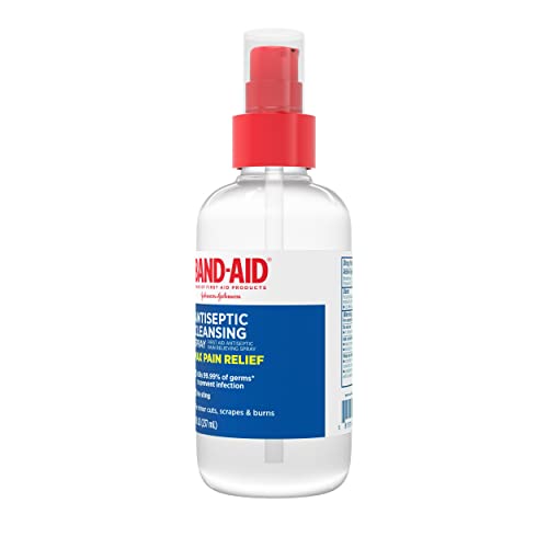 Band-Aid Brand Pain Relieving Antiseptic Cleansing Spray helps clean and relieve the pain of minor cuts, burns, and scrapes. Formulated with the topical analgesic pramoxine HCl, this pain relieving antiseptic spray helps alleviate the pain and discomfort of minor wounds. The no-sting spray also contains benzalkonium Cl, a first-aid antiseptic, to kill 99.99%* of germs and help prevent infection. The perfect addition to any at-home or office first aid kit along with other essential wound care supplies, the first aid antiseptic spray is safe and effective for wound care on adults and kids ages 2 and older. To use, apply a small amount on the affected area one to three times daily and once dry, cover the wound with a sterile bandage. *germs commonly associated with skin infections