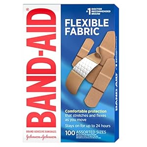 100-count assorted sized Band-Aid Brand Flexible Fabric Adhesive Bandages for first aid and wound protection of minor wounds, cuts, scrapes and burns. Adhesive bandages make a great addition to wound care supplies and first aid kits