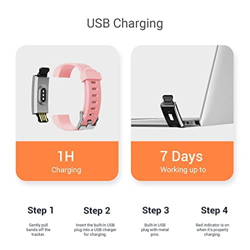 More Compatibility & Functions: Fully compatible with smartphones with iOS 7.1 & higher/Android 4.4 & higher systems and Bluetooth 4.0 & higher. The screen is automatically lightened up when you turn your wrist towards you; a built-in USB plug enables easy charging without charging cable and dock, remote camera shooting, alarms, and more.
