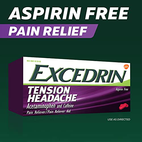 Excedrin Tension Headache Relief Caplets are a fast-acting, aspirin-free alternative that provides headache pain relief, neck pain relief and shoulder pain relief quickly. Combining acetaminophen with caffeine, this tension headache medicine delivers an effective formula with both a pain reliever and an amplifier to treat the headaches associated with neck and shoulder pain caused by tension and stress. These Excedrin tension headache caplets relieve minor pain caused by tension headaches and muscular aches. Get fast relief from your headache, neck and shoulder pain with this tension headache pain medicine.