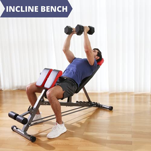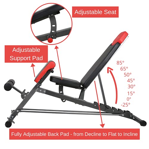 ADJUSTABLE MULTI-PURPOSE BENCH FOR MULTIPLE WORKOUTS Designed to serve as a flat, incline or decline bench, you can target your glutes, thighs, hamstrings and abs, or adjust for a full upper body workout as well.