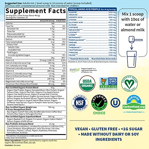 Raw fitness is your gateway to Extraordinary Health. Raw Organic Fit is a USDA Certified Organic, Raw, plant-based, vegan, high-protein powder specifically designed for weight loss and is made with raw sprouted organic ingredients.† It differs from our other proteins because it has several additional clinically studied ingredients, including Svetol Green Coffee Bean Extract, Raw Food Created Chromium and Organic Cinnamon to help you burn fat, maintain healthy blood sugar, boost your energy, lose weight and look great!† It also has Raw Organic Ashwagandha added to help fight cravings. Whether you’re an endurance athlete or simply looking to jumpstart your fitness routine, Raw Organic Fit delivers 28 grams of complete protein to help fuel your day.† †These statements have not been evaluated by the Food and Drug Administration. This product is not intended to diagnose, treat, cure or prevent any disease.