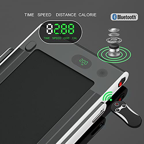 WITH BLUETOOTH SPEAKER, PHONE HOLDER, REMOTE CONTROL & APP CONTROL — Connect the Superfit treadmill to your phone through Bluetooth, so you can play music while you are exercising. You can also use the phone holder to watch videos or chat with friends. The remote control is convenient to adjust the speed of movement and stop instantly. Smart APP control is perfect to record exercise data and running with other users.