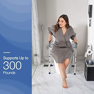 ✅【Adjustable, Foldable, Fit Any Standard Toilet】The foldable toilet handicap rails can be used with any toilet. The toilet support rails elderly handle height is also adjustable from 24” to 31”.Toilet handrails are padded with a soft rubber for superior support. The textured rubber handles create a comfortable, non-slip surface for a safe and secure grip