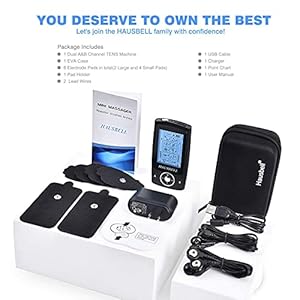 【YOU DESERVE TO OWN THE BEST】Let’s join the HAUSBELL family with confidence! Get the best TENS Unit. Package Includes 1 Dual A&B Channel TENS Machine; 1 EVA Case; 6 Electrode Pads in total(2 Large and 4 Small Pads); 1 Pad Holder; 2 Lead Wires; 1 USB Cable; 1 Charger; 1 Point Chart; 1 User Manual. It’s the best TENS Unit gift for yourself, families and friends. For any unpleasant order, refund or replacement are available. We are determined to make you a happy customer.