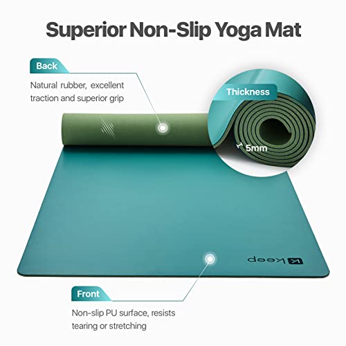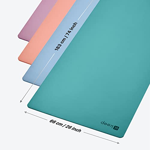 Durability Mat Made By KEEP:High density anti-tear middle-mesh layer makes our yoga mats high strength of tear resistance and no flaking,74″L x 26″W x 5mm Thick / Weight: 7.71lbs,makes this yoga mat more durable than normal.