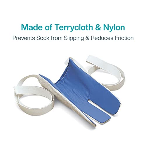 Three-finger design sock aid is the best selling sock aid on the market and works with little effort, even the first time. 29” (74 cm) long straps with loop handles eliminate the need to bend and are easy to manipulate. Terrycloth outside holds the sock in place, while the nylon reduces friction and allows the sock to smoothly slide onto the foot.