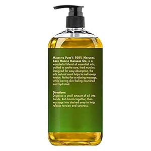 Easy & Quick Pump Out Bottle: Majestic Pure’s Sore Muscle Massage oil comes inside an easy to pump bottle. A single press on top and your oil will squeeze out quickly and easily, giving you the exact amount you require with no spillage