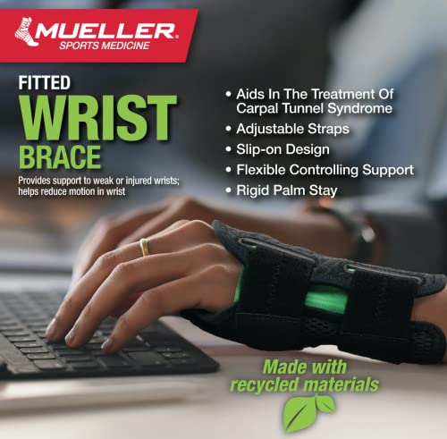 Mueller Green Fitted Wrist Brace, Black, Left Hand, Small/Medium