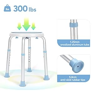 Lightweight and Durable: Our shower stools and benches are constructed with a corrosion-resistant aluminum frame, the lightweight shower stool frame supports up to 300 pounds. The lightweight frame is easily portable for added convenience.