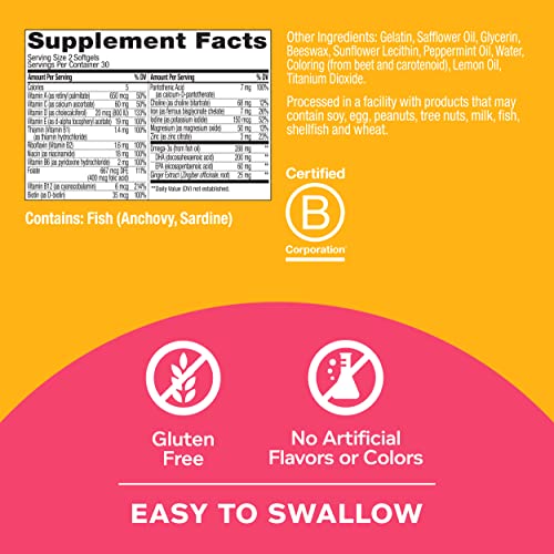 OLLY Ultra Strength Essential Prenatal Folic Acid + DHA Softgels deliver essential nutrients you need for overall wellness and a healthy pregnancy.* A few highlights: Folic Acid is a B vitamin that supports the growth and development of your little one and Choline is a critical nutrient to help support development of the fetal brain and nervous system.* DHA is an essential fatty acid that supports healthy brain and eye development for baby (extracted from a purified marine source) and immune supportive nutrients like vitamins C and E help support overall health and wellness during pregnancy.* For a fresh twist, our premium OLLY women’s multivitamins have a hint of refreshing lemon and mint scent and zero sugar. Don’t let their size fool you—these little guys go big on results. Swallow two softgels daily with food and water.* *These statements have not been evaluated by the Food and Drug Administration. This product is not intended to diagnose, treat, cure or prevent any disease.