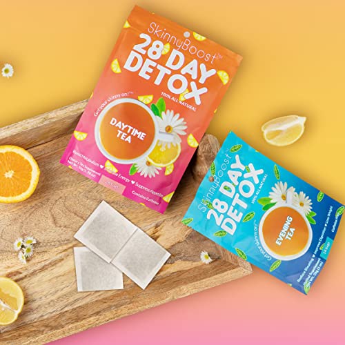 CLEANSE & DETOX IN 2 STEPS – Skinny Boost 28 Day Detox kit includes 1 Daytime Tea (28 tea bags) and 1 Evening Tea (14 tea bags) The Skinny Boost 2 step detox plan is all natural and made of teas and herbs. The combination of our powerful all natural ingredients are the perfect way to help achieve wellness goals and slim the waistline.