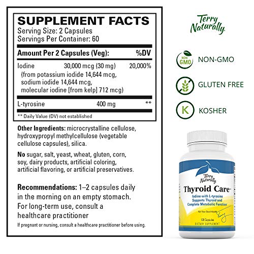 More Than Iodine; Thyroid Care also contains L-Tyrosine; This amino acid is required to create the thyroid hormone thyroxine, which supports mental well-being and daily energy