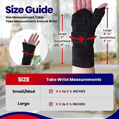 THUMB BRACE With WRIST SPLINT Doubles as Both a Thumb Stabilizer to Support Thumb Joint Injuries, Speed Your Healing Process & Soothe Your Painful Thumb Tendons & Ligaments. And a Wrist Brace for Supporting & Immobilizing Wrist Injuries, Carpal Tunnel, Tendonitis or Wrist Arthritis – Right and Left Hand Options. 2 Sizes See Product Images For Wrist Measurements