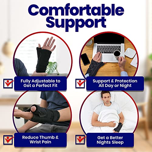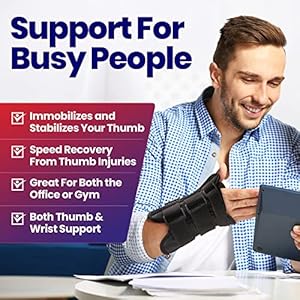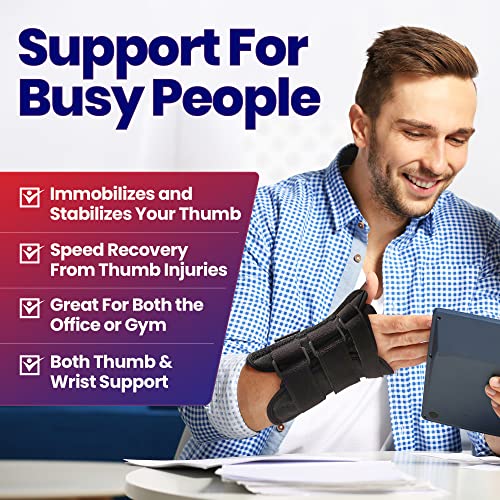 TWO REMOVEABLE SPLINTS Great CMC Thumb Joint Immobilizer to Protect, Guard and Stabilize Your Sprained or Broken Thumb. Plus This Brace has an Adjustable Wrist Splint to Stabilize Your Wrist & Thumb All in One. SPEED YOUR RECOVERY From a Scaphoid Fracture, Trigger Thumbs, De Quervain’s Tenosynovitis, Carpal Tunnel Syndrome or Sprain