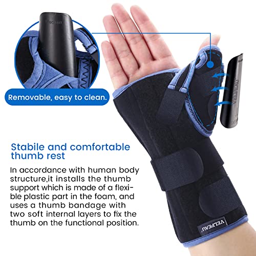 【PHENOMENAL PROTECTION】VELPEAU Wrist Brace with Thumb Support applies uniform pressure on the wrist and first metacarpal joint, which provides ultimate pain relief from various ailments, including tendinitis, tendovaginitis, post-traumatic treatment of moderate to severe sprains, carpal tunnel syndrome (CTS), activated osteoarthritis or arthritis of the wrist, instability and functional overloading in the wrist, radial nerve palsy of hand, post-operative and post-removal of casting or splinting.