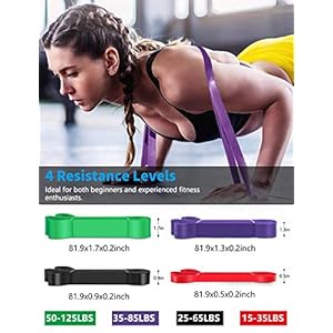【Durable Natural Latex】Red:15-35 lbs., Black:25-65 lbs., Purple:35-85 lbs., Green:50-125 lbs. Our pull up bands can be stretched repeatedly year after year. No odor, no poison. Environmentally friendly latex material isn’t only durable, but also healthy.